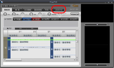 2. 番組表画面のタブをクリックします。