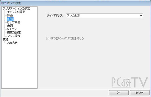 インターネットの番組表(iEPG)から録画予約を行うには、設定画面で[iEPGをPCastTVに関連付ける]を選択している必要があります。