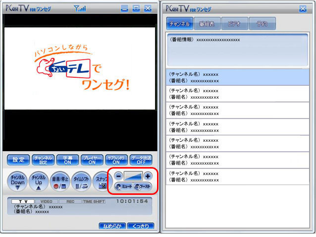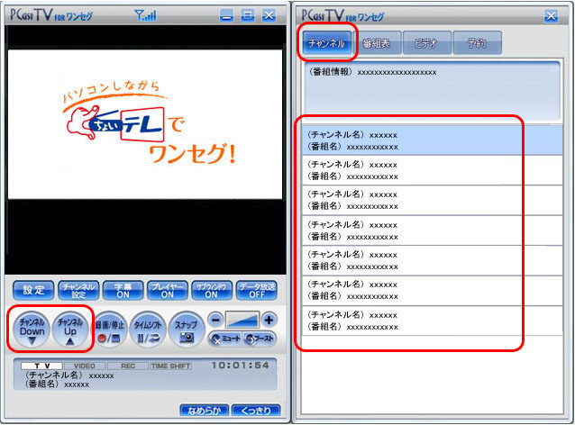 チャンネルは、プレーヤーの[チャンネルDown]/[チャンネルUp]をクリックして切り替えます。