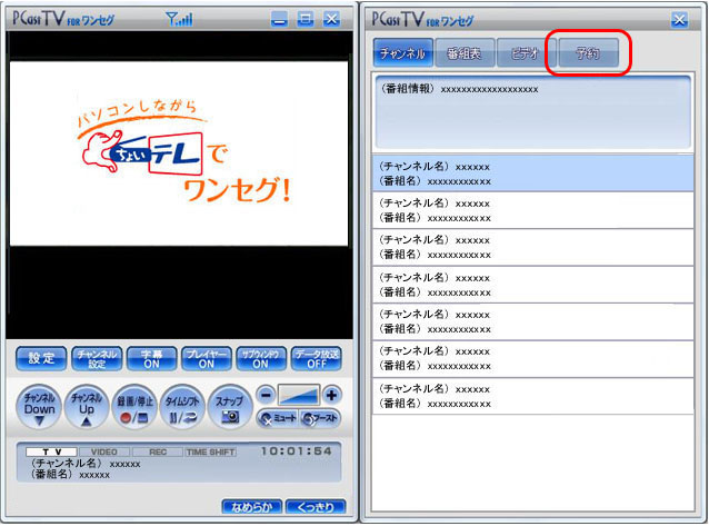 1. サブウィンドウの[予約]タブをクリックします。 ※ サブウィンドウが表示されていないときは、[サブウィンドウON]ボタンを