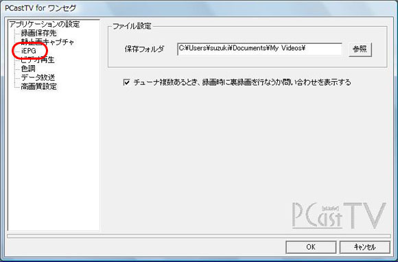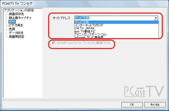 6. iEPGサイト名を選択し、「iEPGをPCastTV for ワンセグに関連付ける」をクリックしてチェックマークをつけます。![]()