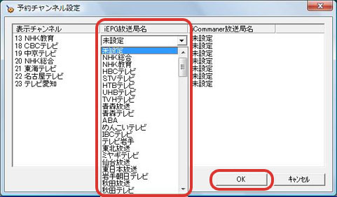 2. 予約チャンネル設定画面が表示されたら、iEPG放送局名を設定し、[OK]をクリックします。![]()