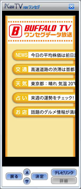 PCastTV for ワンセグでは、視聴の番組の局のデータ放送を閲覧することができます。