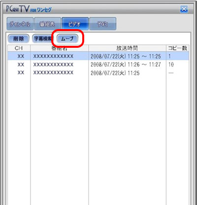 ※ドライブを参照しているエクスプローラを開いている場合は終了してください。4. PCastTV for ワンセグのサブウィンドウの[ビデオ]タブより