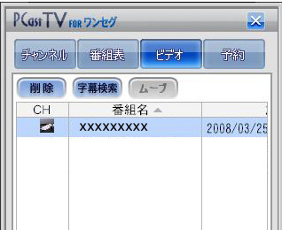 PCastTV for ワンセグを起動し、サブウィンドウの[ビデオ]タブより