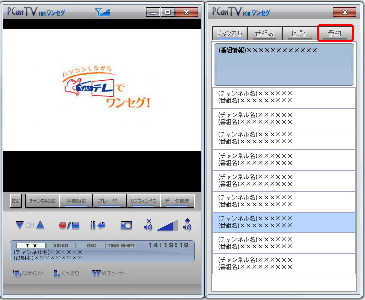 1. サブウィンドウの[予約]タブをクリックします。 ※ サブウィンドウが表示されていないときは、[サブウィンドウON]ボタンを