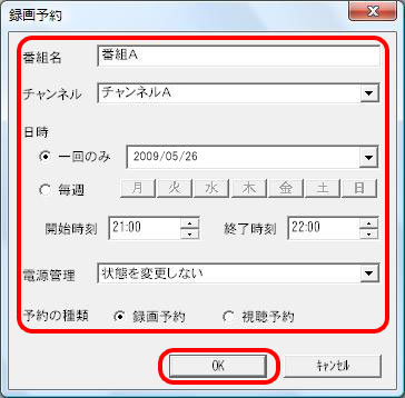 予約内容を確認し[OK]をクリックします。以上で録画予約は完了です。