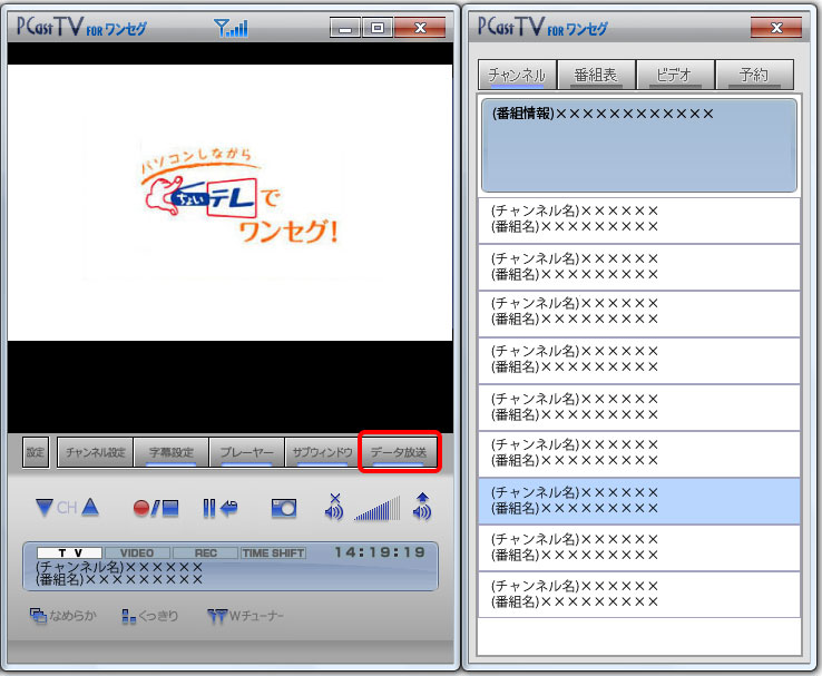 PCastTV for ワンセグでは、視聴の番組の局のデータ放送を閲覧することができます。