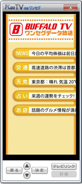 - データ放送ウィンドウが表示されます。画面下部のボタンで操作することができます。