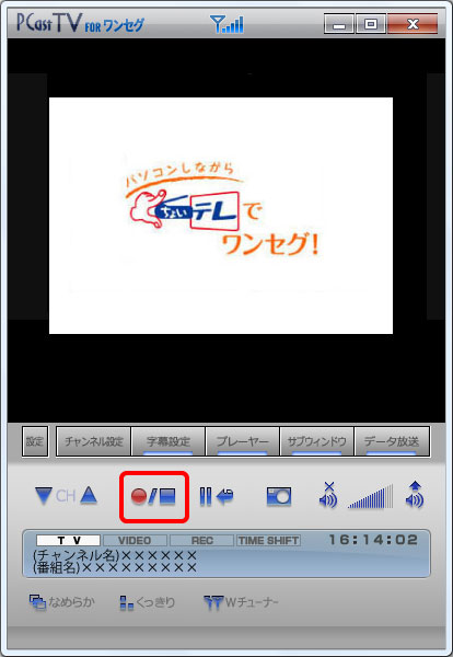 1. PCastTV for ワンセグで録画したいチャンネルを表示させ、