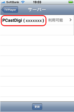 6. ダビングしたいサーバー名「アプリケーション(パソコン名)」をタップします。