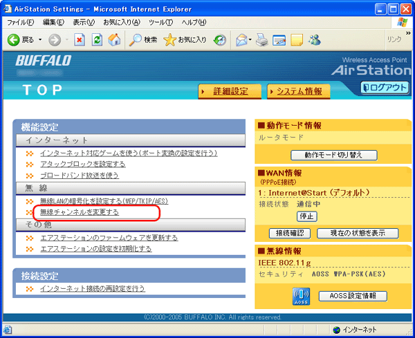 - 本無線親機の場合、無線チャンネル自動選択機能により、他の無線機器が使用していないチャンネルを検索して自動的に割り当てるため、通常は無線チャンネルを設定する必要はありません。