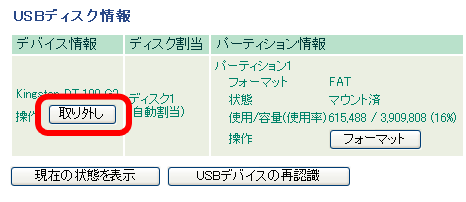 USBディスクを取り外すときは、以下のいずれかの方法にしたがって取り外してください。USBディスクにアクセス中に取り外すとデータ破損などの原因となります。