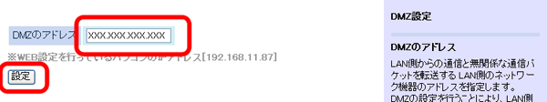 [DMZのアドレス]を入力して、[設定]をクリックします。