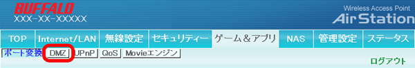 [DMZ]をクリックします。