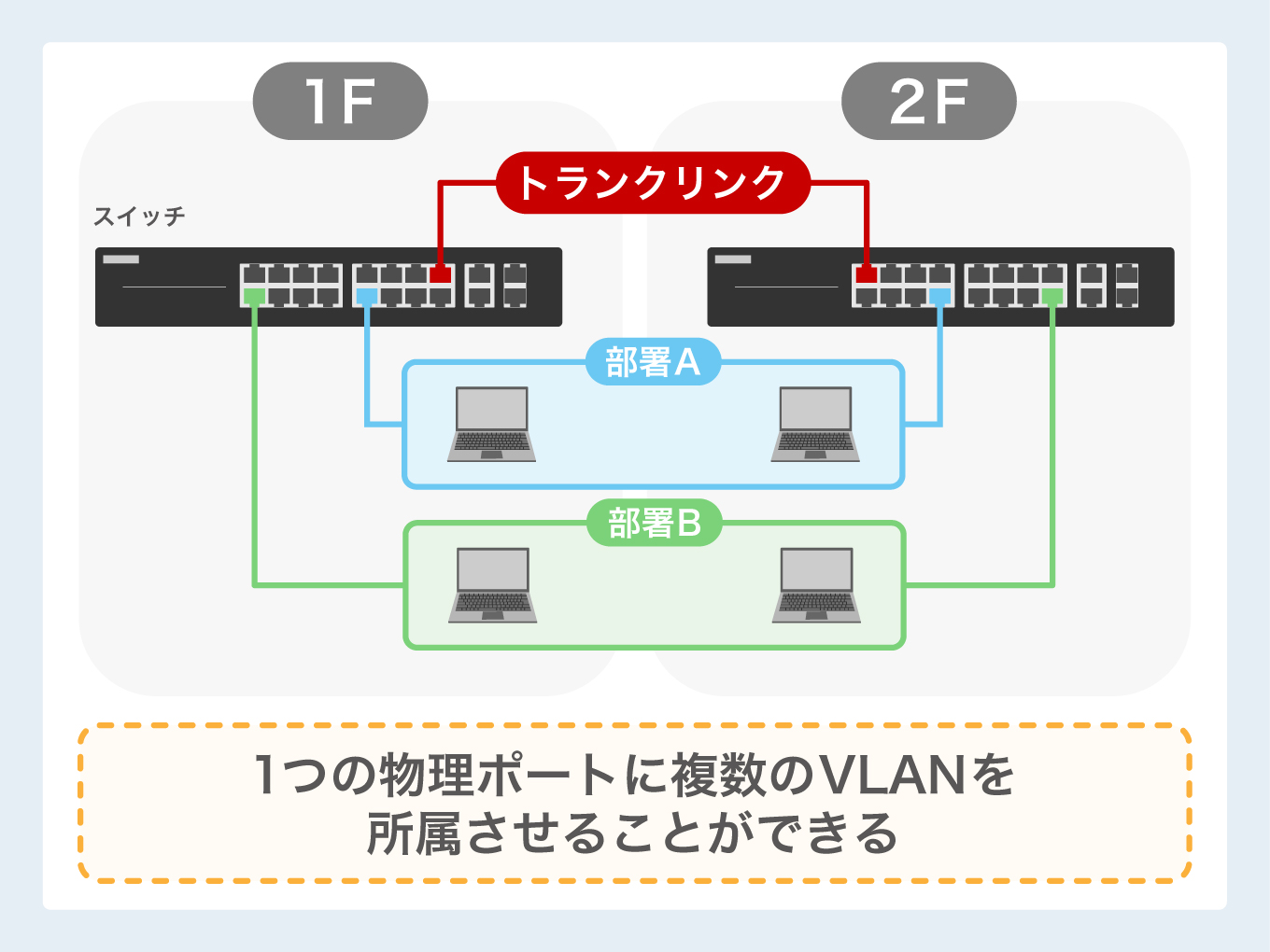 この技術は、社用端末と個人所有デバイスを別々のネットワークに分けたり、特定の部署の端末だけがファイルサーバーにアクセスできるように制御したりする場合にも活用できます。
