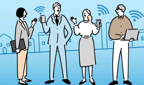 フリースポットとは、施設管理者が来訪者に無料で無線LANでインターネットにアクセスできる環境を提供し、自由に使っていただくエリア・サービスをいいます。来訪者にも施設にもメリットがあるエリア・サービスです。