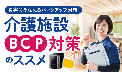 2024年4月、「介護事業者の事業継続計画(BCP)の策定」が義務化されます。クラウドバックアップ対応NASでできる対策をご案内します。