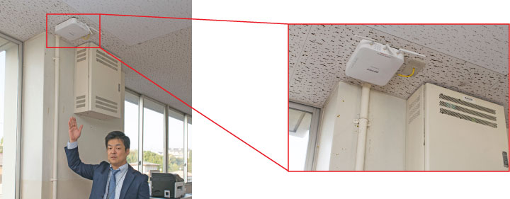 「『WAPM-1750D』は、100台のタブレットの同時通信が可能なため、設置台数は2クラスに1台とし、教室内ではなく廊下に設置することにしました。現在、菊川市の小・中学校は1クラス約35名ですから、仮に2クラス同時に使用したとしてもまだ余裕があります。廊下に設置した場合、教室の壁やドアが障害になりますが、電波環境調査を実施したところ全く問題ありませんでした。」