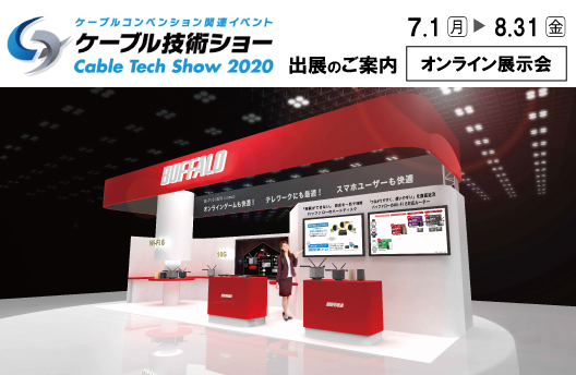 株式会社バッファローは2024年7月18日(木)~2024年7月19日(金)まで、東京国際フォーラムにて開催される「ケーブル技術ショー2024」へ出展いたします。 テレワーク、オンライン授業の広がりなどで自宅のWi-Fi環境の重要性が高まっています。加入者様に快適なWi-Fi環境を提供したいとお考えになるISP・CATV事業者様に、Wi-Fi 6&メッシュWi-Fi対応の加入者様へのサポートがしやすい専用ルーターをご紹介します。また、弊社グループ会社のバイオス社からも、放送業界用のストレージ製品をご紹介させて頂きます。