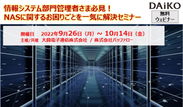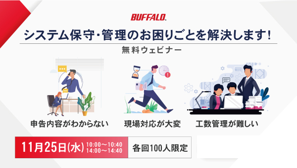 過去に配信したバッファローのオンラインセミナーを定期配信! 弊社製品・サービスのご紹介や、業務効率化につながるソリューションなど、週ごとに様々なコンテンツを配信いたします。