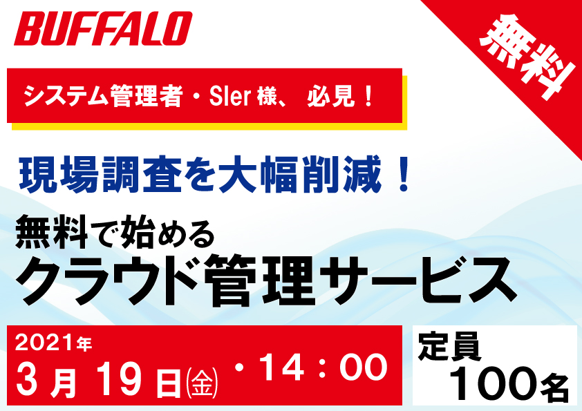 株式会社バッファローは、2019年8月7日(水)・8日(木)、島根県立産業交流会館(くにびきメッセ)にて開催される「DISわぁるど in 山陰 まつえ」に展示出展いたします。 <出展内容> ■テラステーションの保守・管理を簡単に! ・NAS運用管理の負担を軽減!テラステーション管理クラウドサービス「キキNavi」のご紹介。 ■磁気データ消去装置「MagWiper」シリーズ ・瞬時にHDDデータを完全消去!磁気データ消去装置「マグワイパー」が情報漏洩からお客様を守ります! ■新学習指導要領を見据えた無線LAN環境 これからの時代、生徒一人一人の可能性を広げるための教育が求められています。 快適で安心・安全な無線LAN環境を実現する商品や管理技術を通じ、先を見据えた教育のICT環境整備をバッファローがサポート!