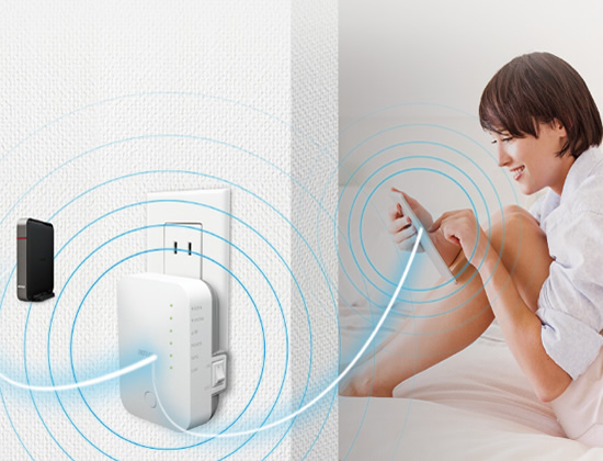 トイレやお風呂等の密閉された空間には、Wi-Fiルーターから発信され長旅をして弱っている電波では十分に届かないので、そういう状態になるのだと思います。そういう方にこそ、中継機をご利用いただきたいと思います。 中継というのは駅伝のようなものです。一人ではとても走り切れないコースも、ランナー達が区間を分担して走れば、それぞれが躍動感を持って走り切ってしまいますよね。それと同じように、今までWi-Fiルーター1台で頑張っていた空間を、中継機を加えて2台で協力して担えば、今まで十分に電波の届かなかったトイレでもお風呂でも快適な通信ができます。