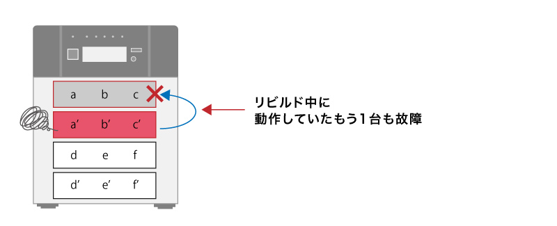 2-3と同じ理由により、リビルド中に別のHDD/SSDが故障し、リビルドに失敗する事例はよく見られます。この場合も同様にリビルドによる復旧はできなくなります。