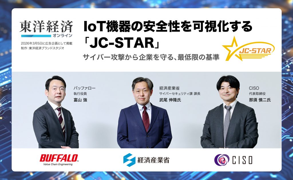 (写真左から)バッファロー 執行役員 富山 強氏経済産業省 商務情報政策局 サイバーセキュリティ課 課長 武尾 信隆氏CISO 代表取締役 那須 慎二氏 経済産業省は2025年3月、IoT製品の安全性をラベルで可視化する「JC-STAR」制度を始動させた。そのインパクト...