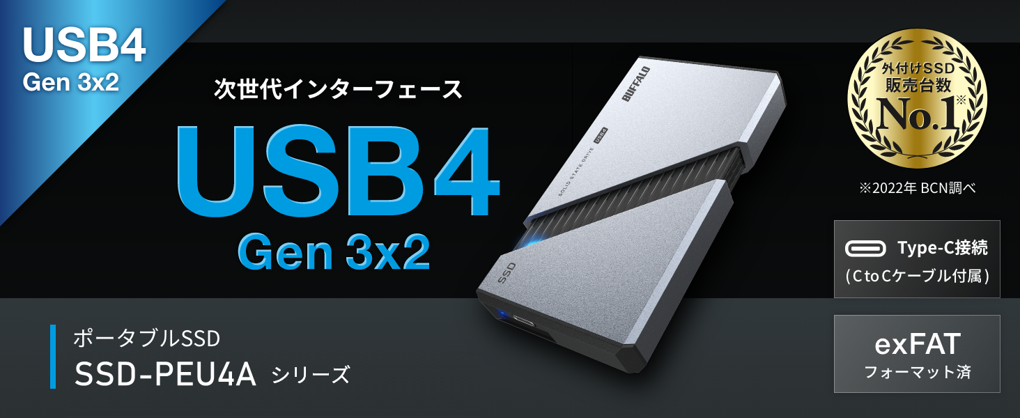 USB4(Gen 3x2)対応、リード速度最大約3,800MB/sを実現したポータブルSSD「SSD-PEU4Aシリーズ」、12月上旬に発売