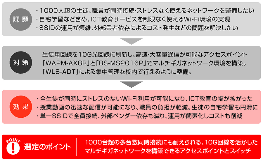 導入事例:校舎全体にマルチギガネットワークを構築。1000名超の生徒と教員の同時接続を可能に
