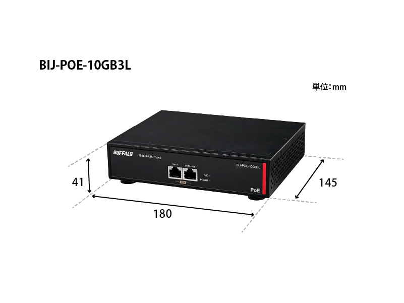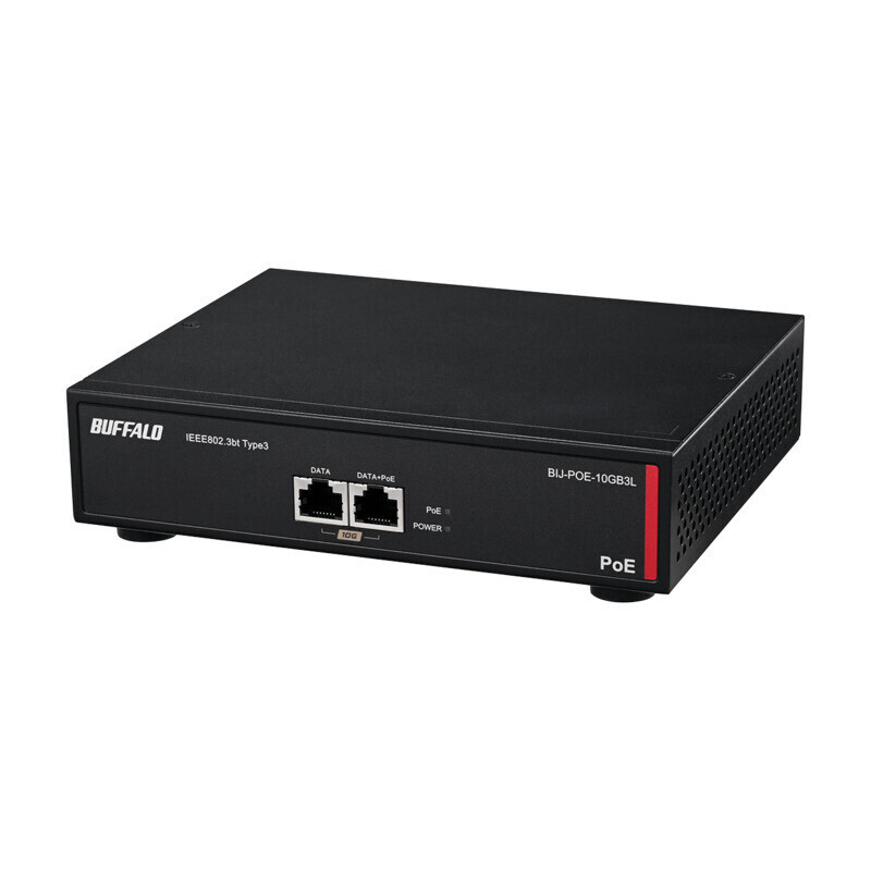 | ポート数 | 10M/100M/1000M /2.5G/5G/10G: 1CH(RJ-45コネクター) ※1CH(入力(Hub側)/出力(PD側)の2ポート一対) ※PoE給電のみでスイッチング機能はありません。別途スイッチングHubが必要となります。 |