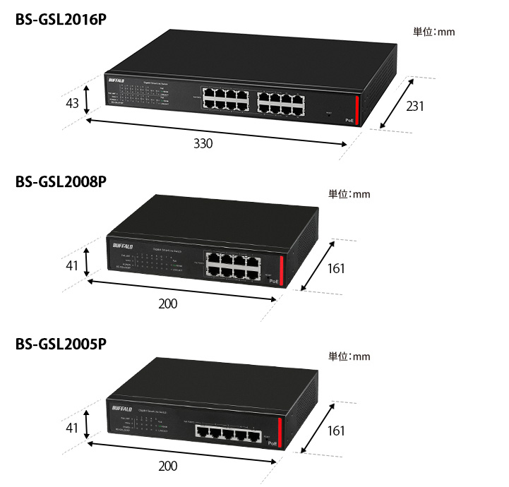 BS-GSL2016P:10/100/1000M 16ポート(うちPoE対応ポート12)