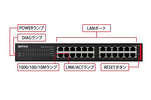 | ポート数 | 10/100/1000M 24ポート ※全ポート Auto MDI/MDI-X対応 |