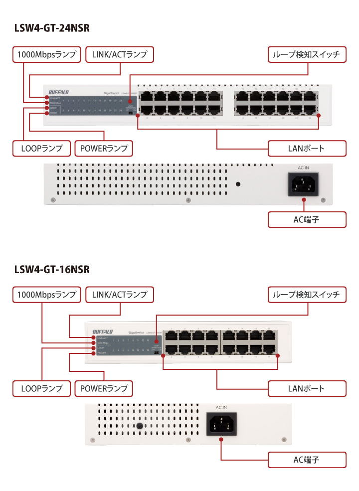 | スイッチング・ファブリック | LSW4-GT-24NSR:48Gbps LSW4-GT-16NSR:32Gbps |
