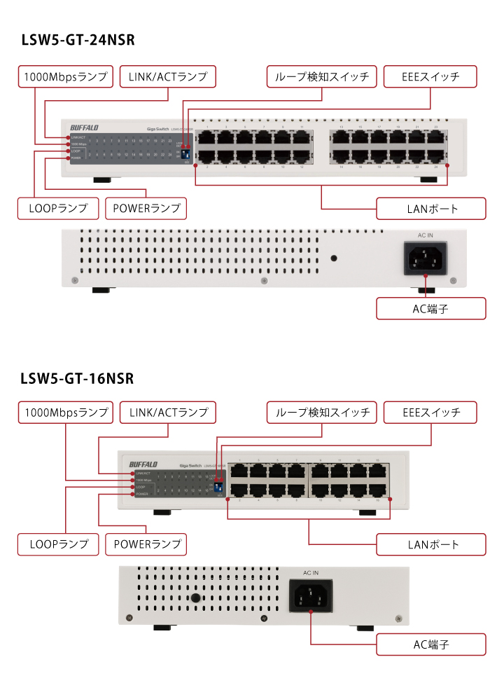 | スイッチング・ファブリック | LSW5-GT-24NSR:48Gbps LSW5-GT-16NSR:32Gbps |