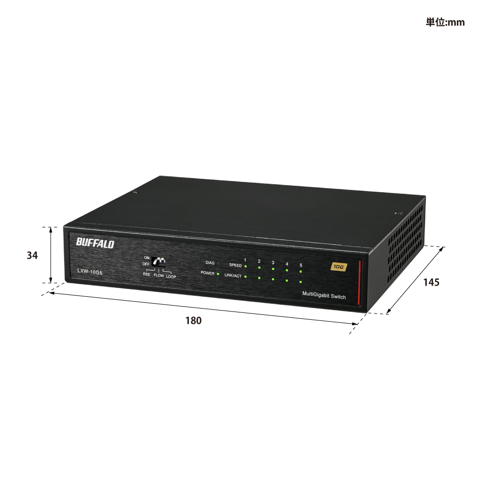 | 伝送速度(規格値) | 10Gbps(10GBASE-T)、5Gbps(5GBASE-T)、2.5Gbps (2.5GBASE-T)、1000Mbps (1000BASE-T)、100Mbps (100BASE-TX) | |
