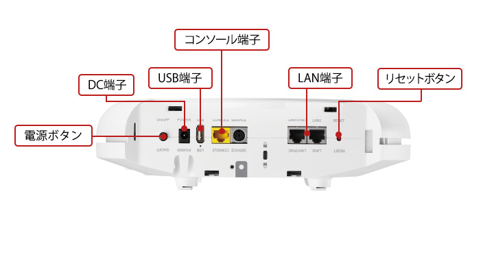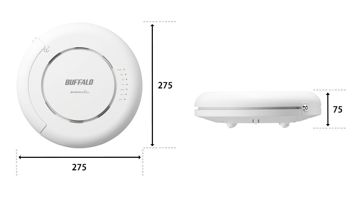 | サポート機能 | DFS障害回避機能、公平通信制御機能、干渉波自動回避機能、電波出力調整、電波混雑防止機能、APSD、DTIM、Beacon Period、QoS、ロードバランス(接続台数制限)、MAC-RADIUS認証、内蔵RADIUSサーバー機能、Proxy ARP(プロキシ・アープ)機能 | |