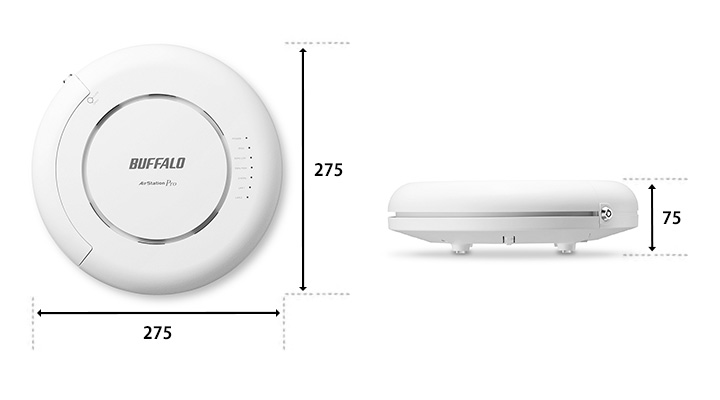 | サポート機能 | DFS障害回避機能、公平通信制御機能、干渉波自動回避機能、電波環境見える化機能、電波出力調整、電波混雑防止機能、APSD、DTIM、Beacon Period、QoS、ロードバランス(接続台数制限)、MAC-RADIUS認証、内蔵RADIUSサーバー機能、Proxy ARP(プロキシ・アープ)機能 | |