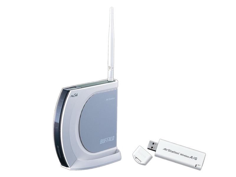 | 製品構成 | エアステーション(親機):WHR-AMPG-KD USB2.0用 無線LAN子機:WLI-U2-KG54L-KD 縦置き用スタンド アンテナ LANケーブル(ストレート、0.5m) USB延長ケーブル 0.1m(フレキシブルケーブル) ACアダプタ エアナビゲータCD(「エアナビゲータ」「クライアントマネージャ3」「クライアントマネージャV」、マニュアル) らくらく!セットアップシート / 保証書 |