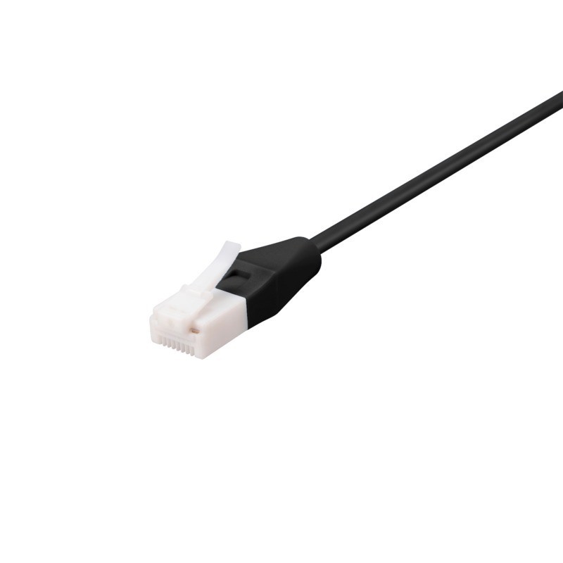 ツメ折れ防止カバー付きのコネクターより約40%(※)薄いコネクターを採用。 スイッチングハブやサーバーで干渉しにくい構造です。