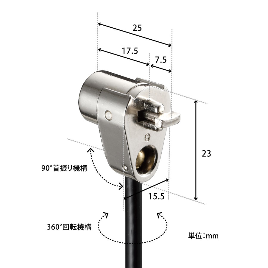 セキュリティースロットにセットし、パソコンや液晶モニター、外付けHDD等を盗難から守るシリンダー錠タイプのワイヤーロックです。