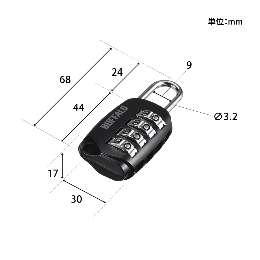| 本体質量 | 南京錠:約68g ワイヤー:約29g スロットパーツ:約16g |