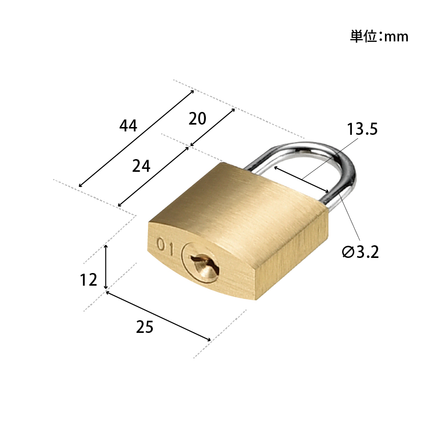 | 外形寸法 | 南京錠:W25mm×H44mm×D12mm ワイヤー:長さ1800mm 太さ2.2mm スロットパーツ:W14.5mm×H32.5mm×D2.5mm フック奥行 約7mm |