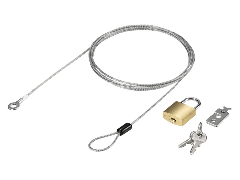 スロットパーツ、南京錠、セキュリティーワイヤーのセット。ノートパソコンのセキュリティースロットにセットすることで、ノートパソコン・マウス・テンキー・その他入力機器を盗難から守ります。南京錠を使用しているので、簡単に開かないため安心です。
