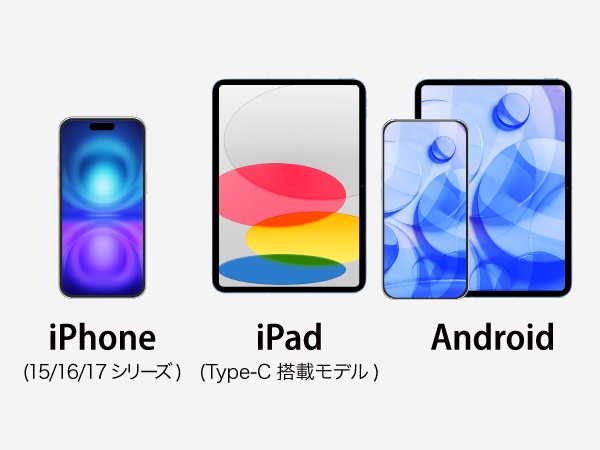 iPhoneやiPad、Anrdoidスマホなど幅広いデバイスの充電に対応しています。