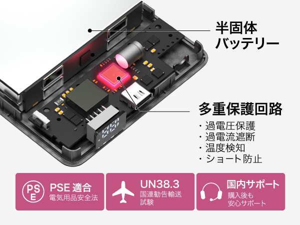 安定性に優れ、発火・発煙リスクを大幅に低減した次世代のモバイルバッテリーです。