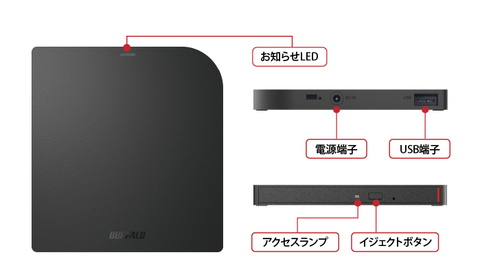 | 主な付属品 | USBケーブル(45cm)、給電ケーブル(1m)、ソフトウェア(Power2Go、PhotoDirector、PowerMediaPlayer)※、取扱説明書 ※付属のソフトウェアは、サポートページよりダウンロードしてお使いください。製品を使用するパソコン1台にのみインストールできます。 |