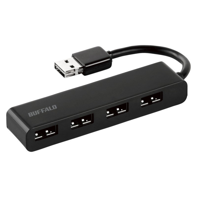4つUSB機器を接続できる4ポートUSBハブ。USBポートの少ない機器でも、マウス、キーボード、カードリーダーなどのUSB機器を複数接続することができます。