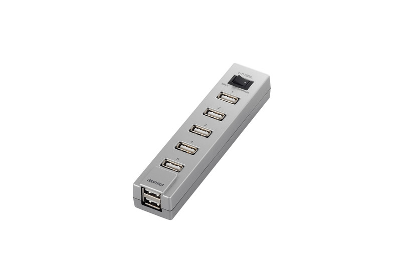 パソコンの電源に連動し、電源OFF時に接続している周辺機器の待機電力を99.9%カットする節電USBハブです。